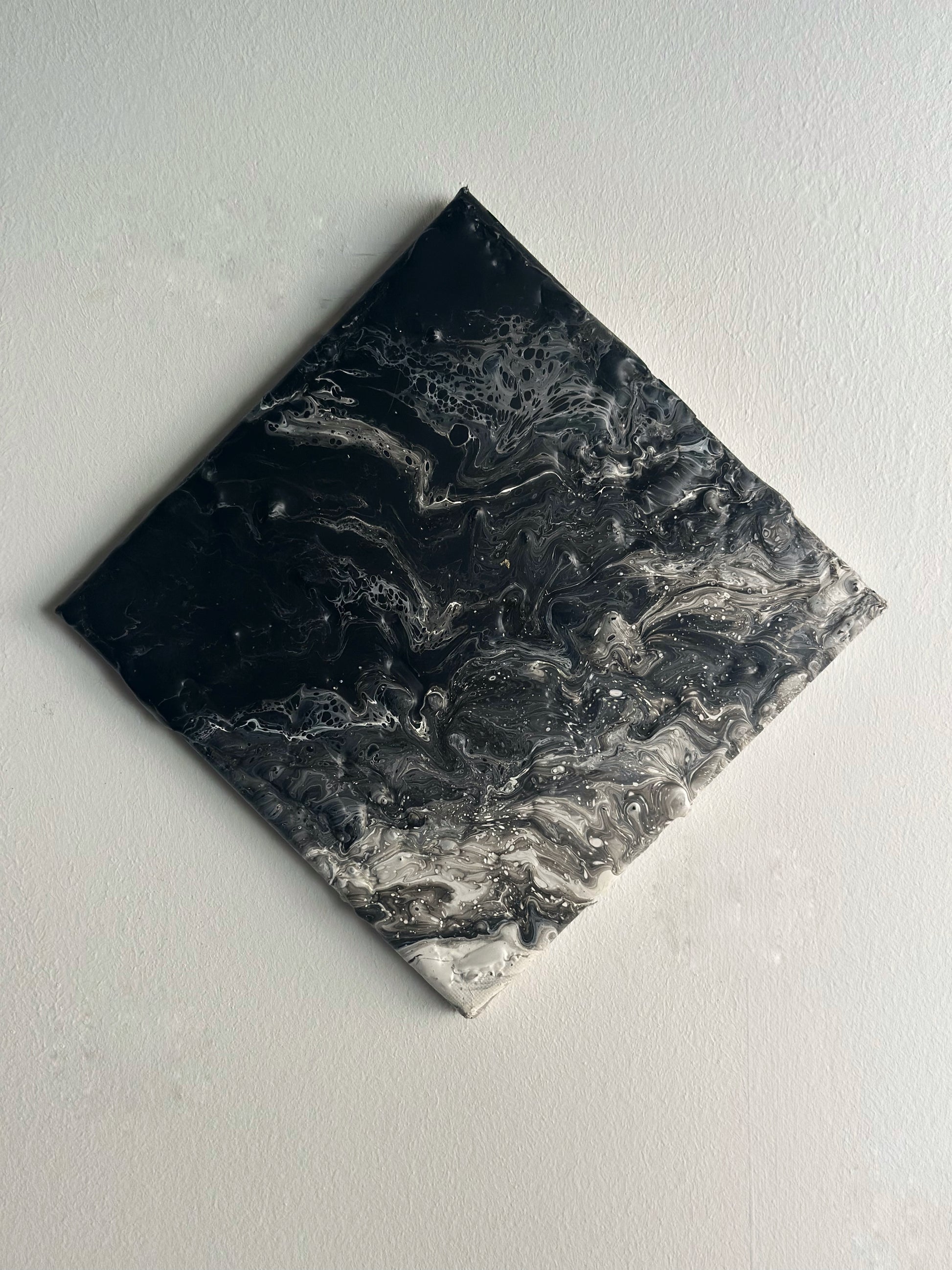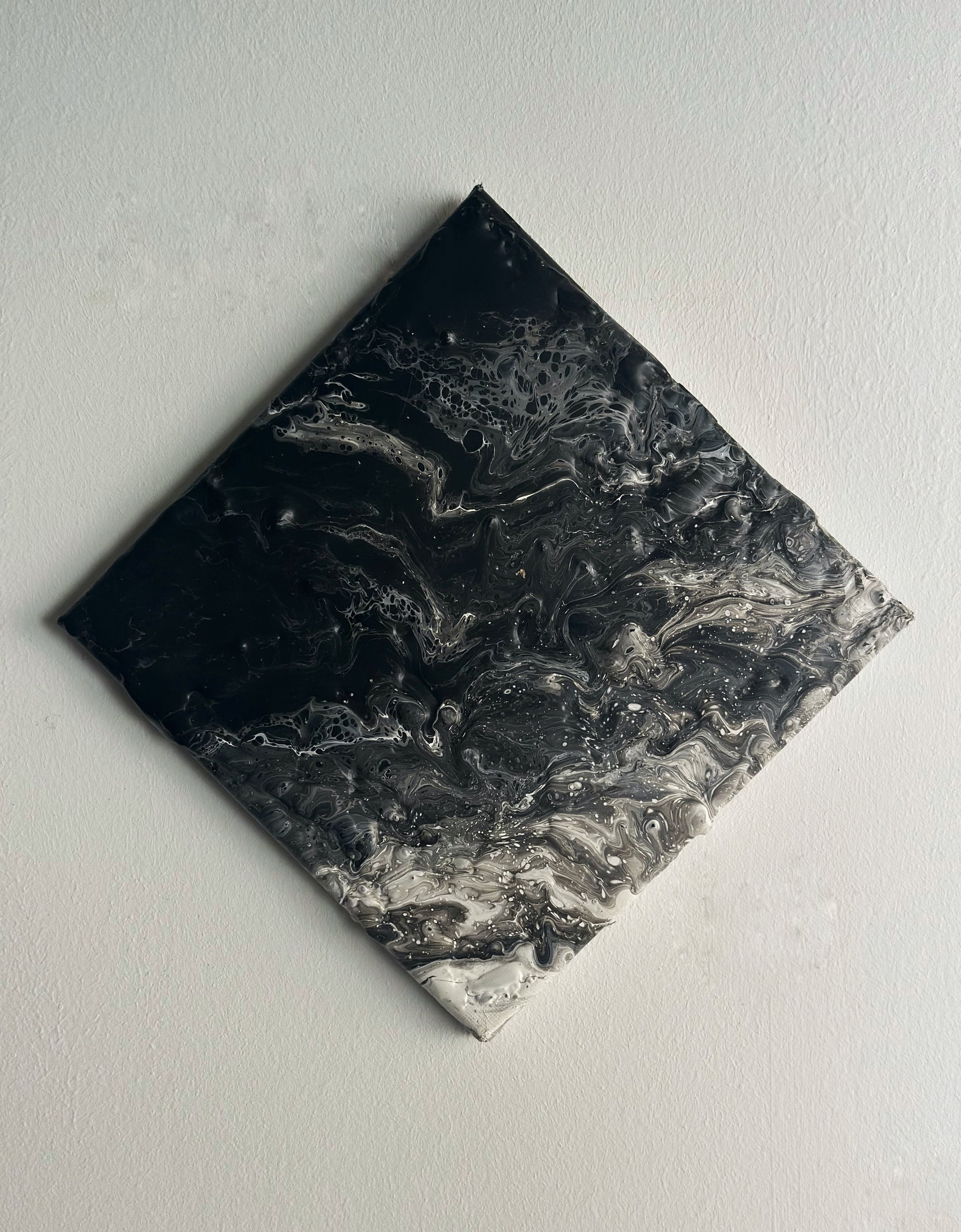 Obra única de arte abstrata criada com técnica fluida sobre tela.